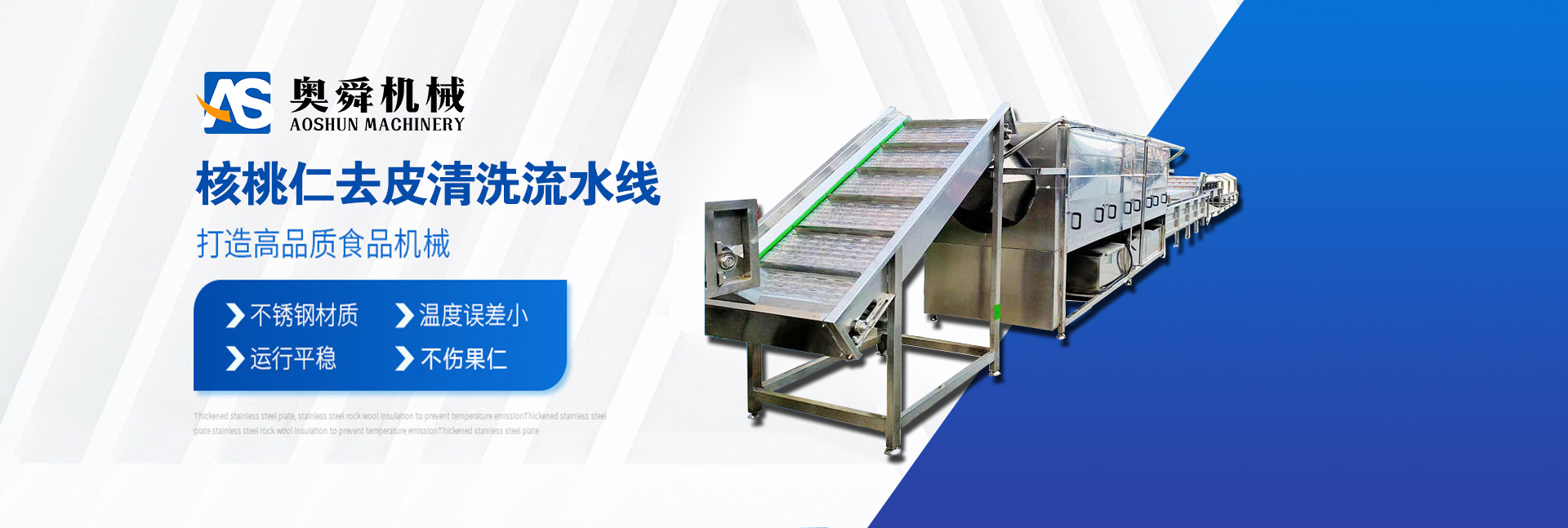 奧舜機械 【核桃仁去皮機】打破了核桃仁深加工過程中的困擾,純物理脫皮方法,專門針對核桃仁表皮的沖洗,代替了傳統的化學泡制去皮,使產品更安全放心,連續式工作,操作簡單,去皮率高、破損率低,自動化程度高,節省人工,可配套烘干箱使用。